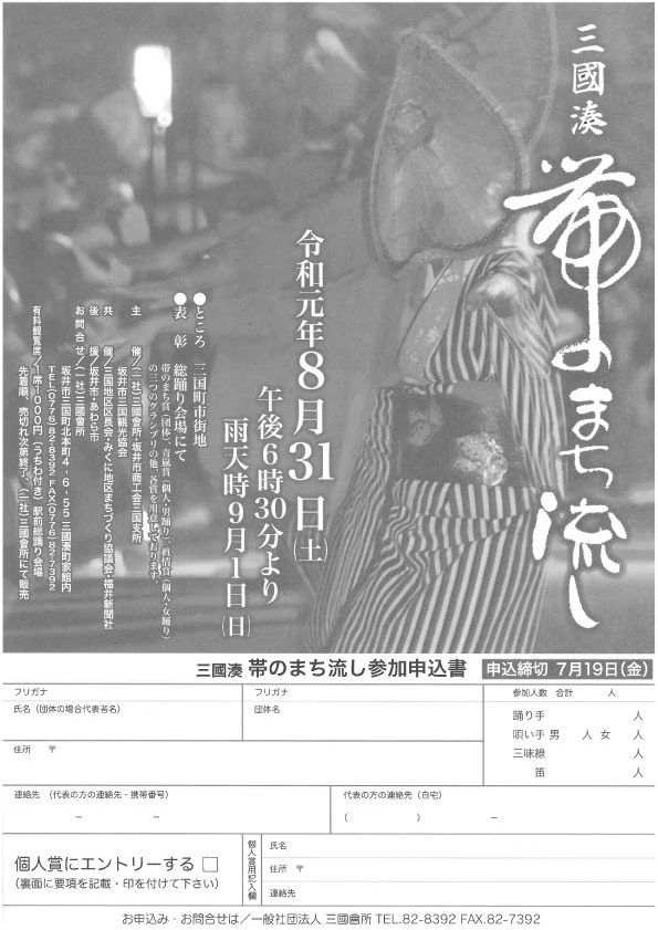 【終了】第10回 三國湊帯のまち流し 参加者募集中